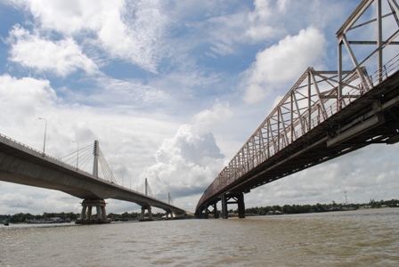 その後、最近開通したというノトゥン・ブリッジ(写真左)をアイス片手に歩いて渡ってみました。