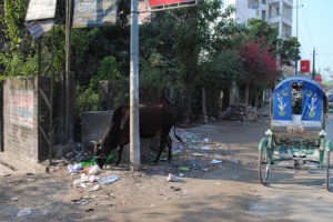 どこにでも牛はいます。ごみをあさってるんです。